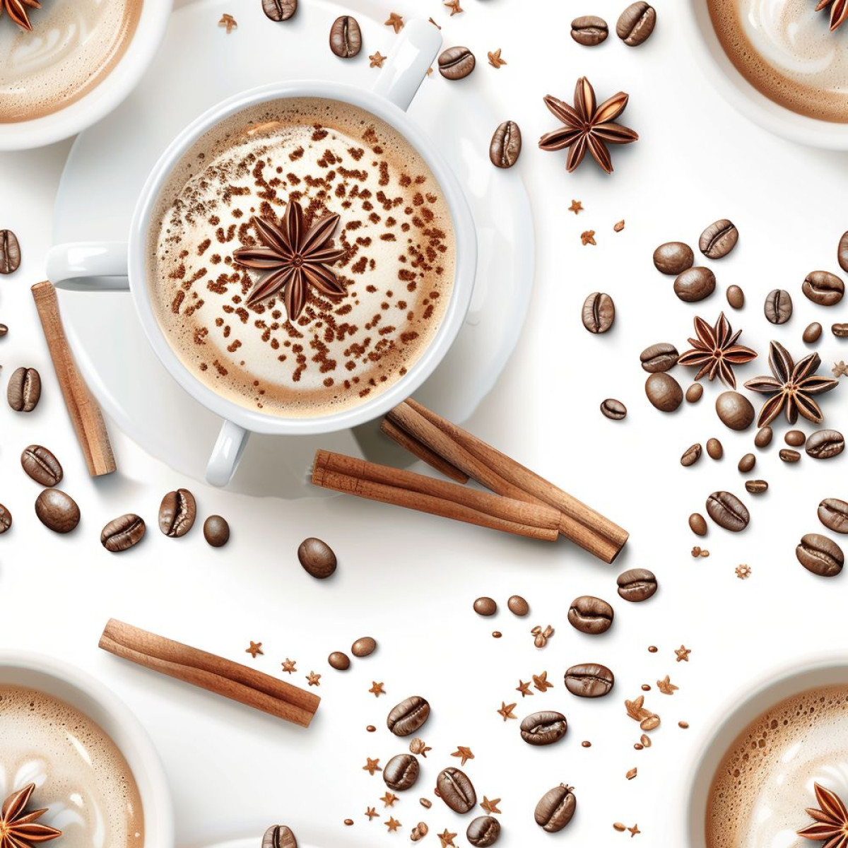Cappuccino bögrében kávészemekkel tapéta konyhába